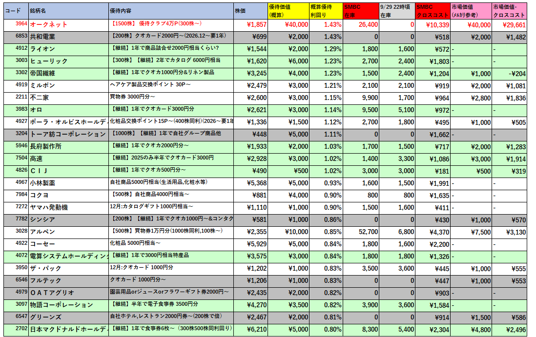 ※抽選優待や自社株買付代金キャッシュバックは割愛