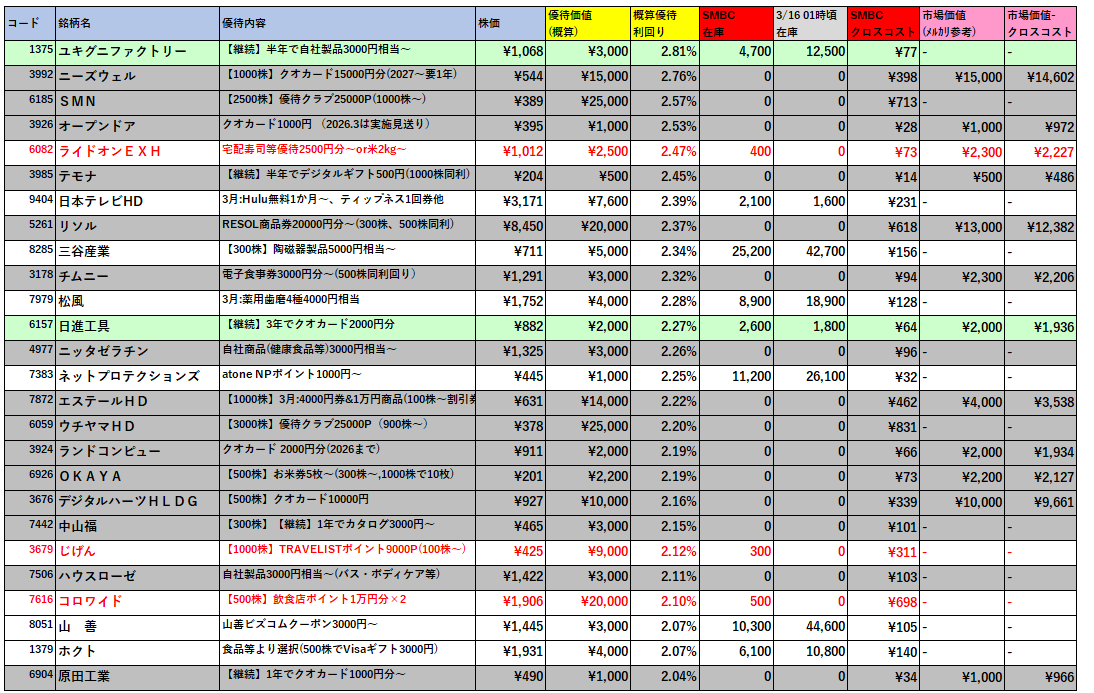 ★3月優待に関する記事 ★対象外銘柄
