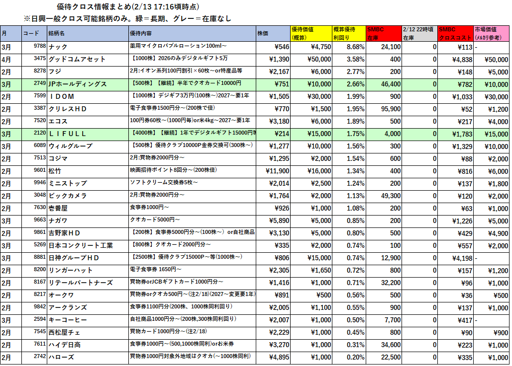 リンク先参照 。月別の優待変更情報もまとめてます