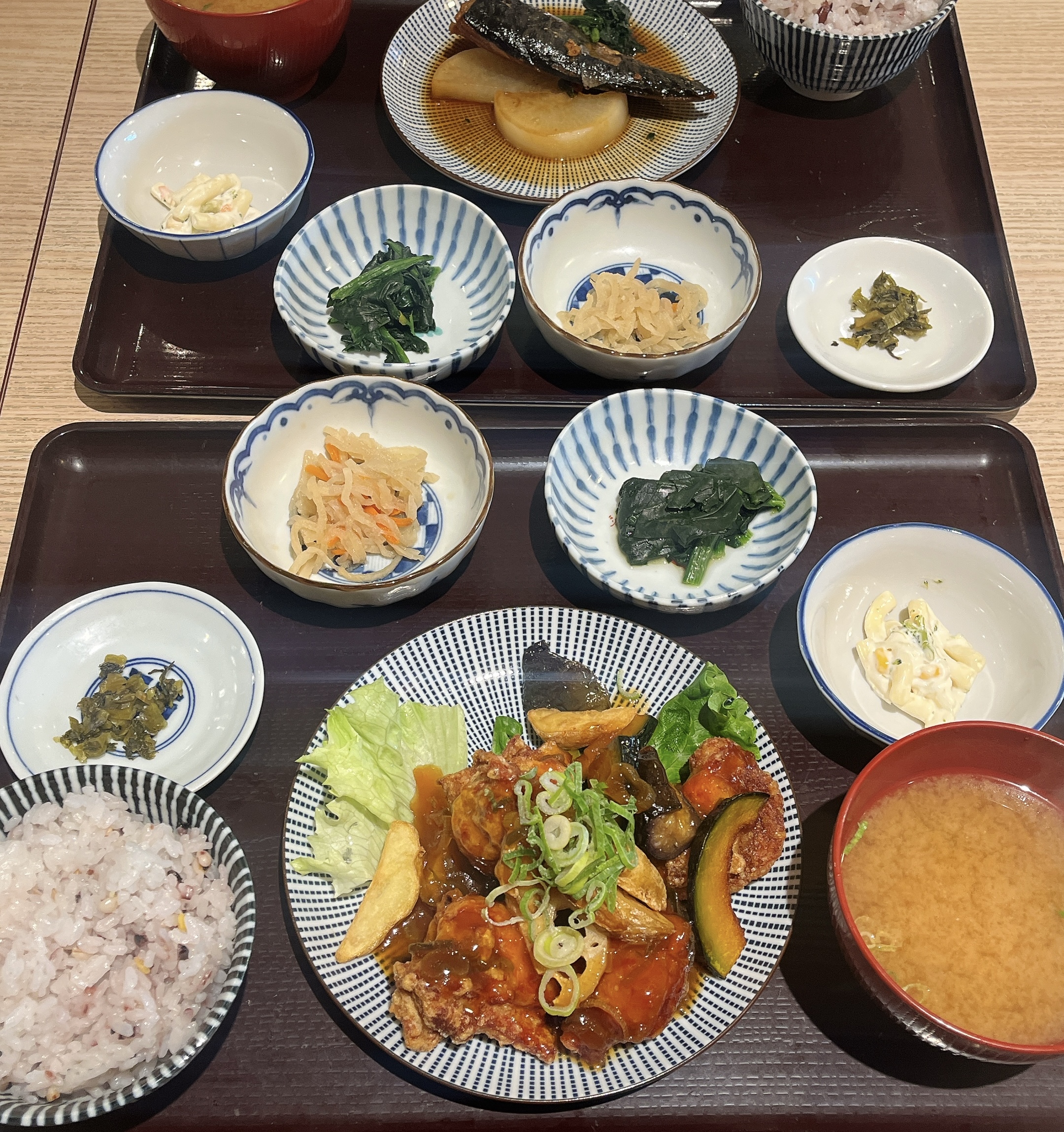 メニューはこんな感じ。手作り感のある主菜・副菜が並び品目数も多く健康的で良いです。