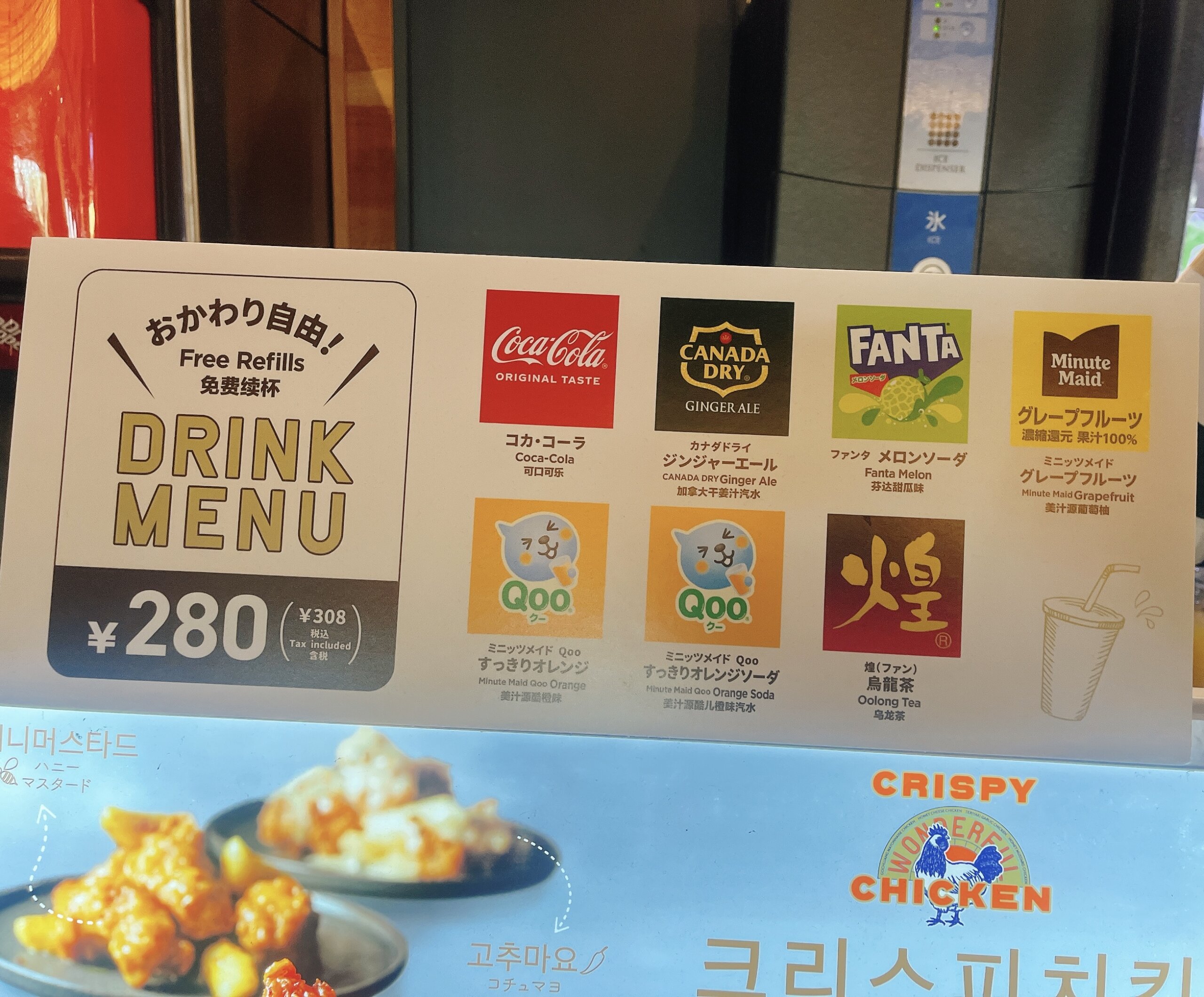 他に期間限定メニューやテイクアウトメニューもあり。ソフトドリンクは308円でおかわり自由
